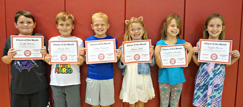 Second Grade (L to R) - Booth Fletcher, Brody Hole, Triton Bernard, Macon Holt, Kaydence Moody, Kaylee Harris