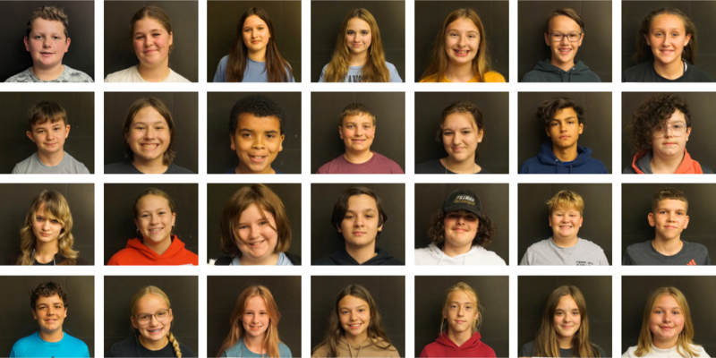 Row 4 (L TO R) - Isaiah Hays, Avery Cadle, Katie Houtz, Alyea Jensen, Aiden Wohletz, Abby Holt, Addison Slaybaugh